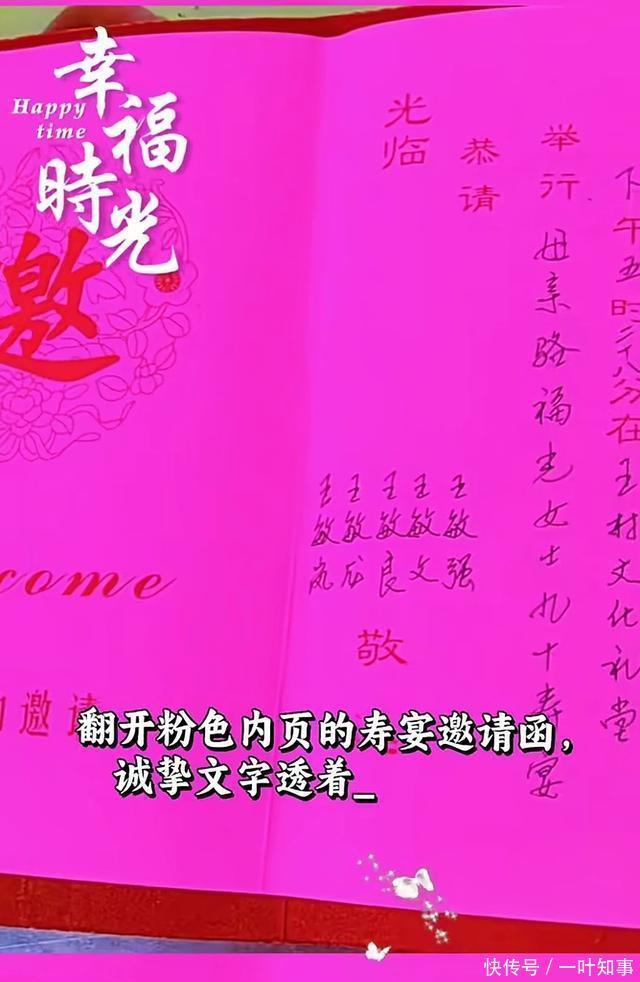 从寿宴邀请函可以看到邀请人有五个,是骆福光女士的五个子女,四儿一女。