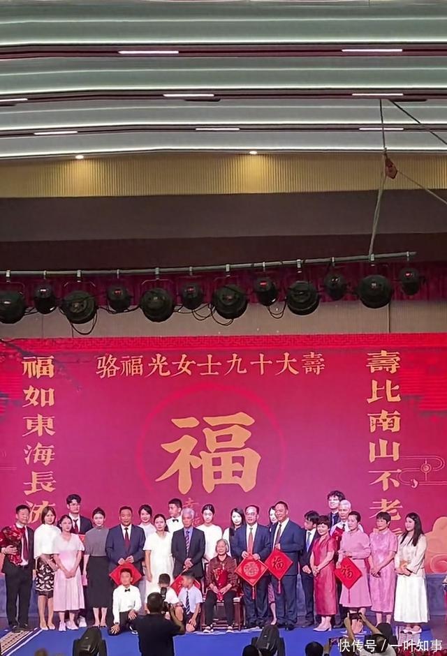 快开席的时候,骆福光女士穿着一件红褂子现身,看上去很朴素。